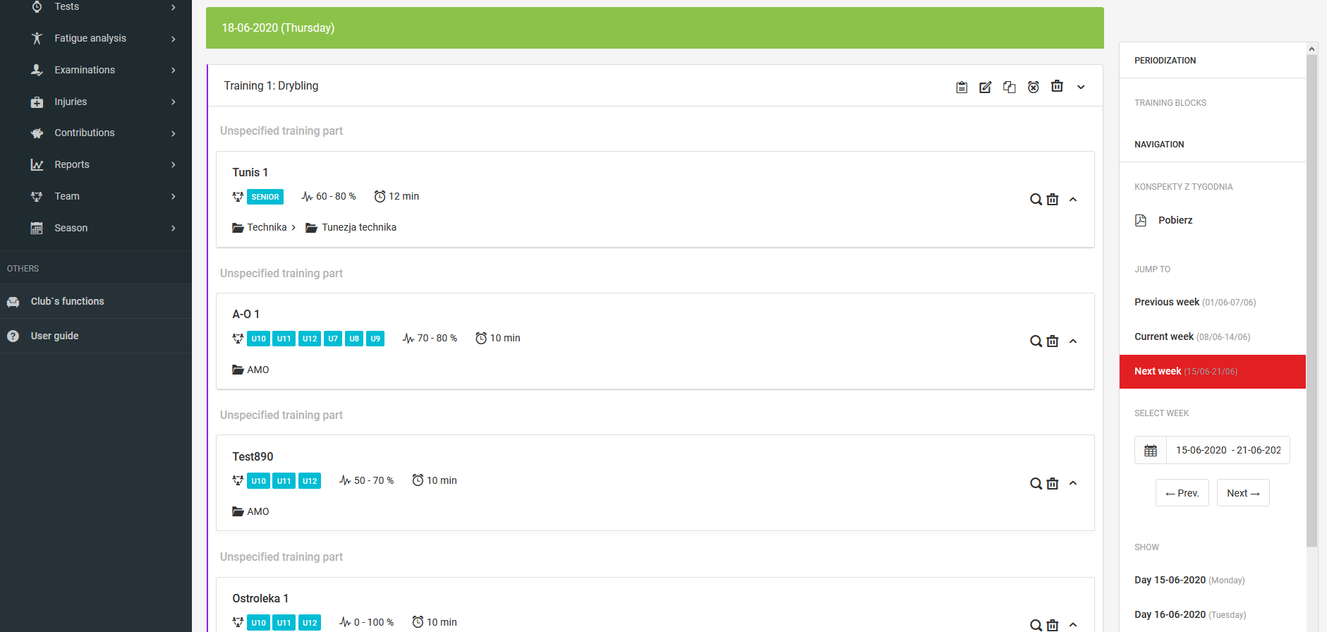 A ordem dos exercícios é determinada arrastando o exercício para a parte apropriada do treinamento. Para fazer isso, pegue o exercício com o mouse e arraste-o para a parte adequada.
